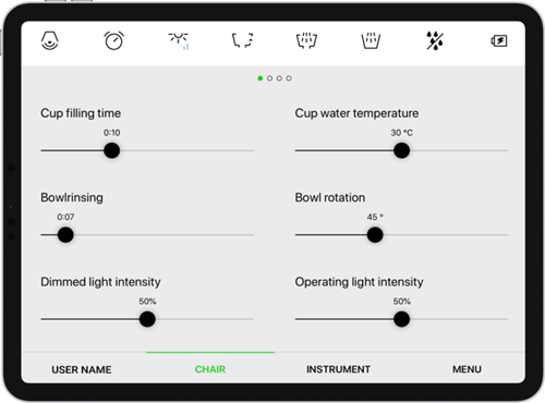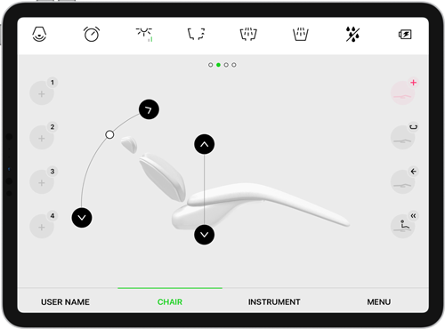 Personalisieren Sie Ihr einzigartiges Erlebnis mit der ModelPro. Sie können z. B. die Stuhlposition, Instrumentenparameter, Licht und Hygiene einrichten. Die Anforderungen des Teams können durch eine unbegrenzte Anzahl von Voreinstellungen erfüllt werden.