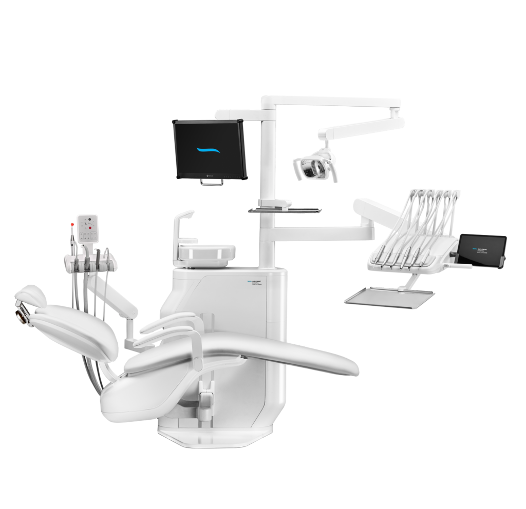 Durch die einzigartige Designlösung und den nach hinten versetzten Stuhl, wurde mehr Arbeitsfläche für Sie und Ihre Assistenten geschaffen. So kommt es nicht mehr zu Platzproblemen.